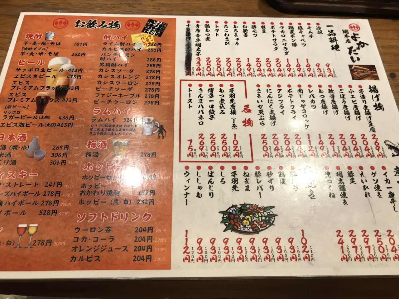 混んでいたせいか、串焼きの提供がやや遅いことと、刺身(生魚)があまりない以外は、立地含めて欠点無し。