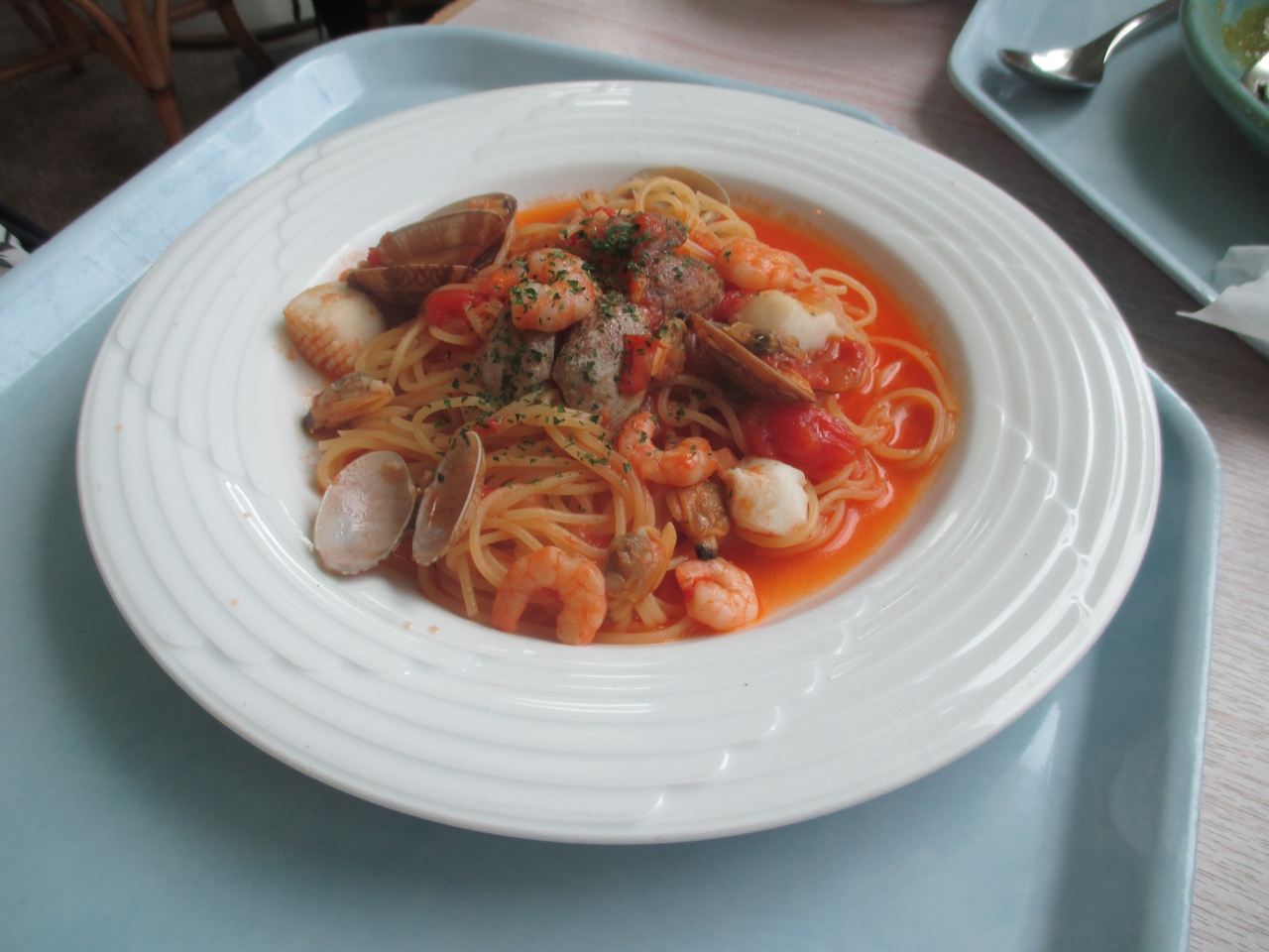 東京ビッグサイト内にあるレストラン。ランチで行ってきました。訪れたときは、催し物があったためか、非常に混雑していました。セルフ式のレストランで、学食のような感じがしました。どのメニューもボリュームがすごく、困ってしまうほど・・・。