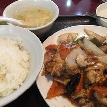 天王洲アイルのオフィス街にある中華料理屋さんで、平日の昼、夜はとても混雑しています。特にランチタイムはお得で定食の種類はいくつかありますが、個人的にオススメなのは鶏肉の黒胡椒炒めです。柔らかい鶏肉と玉ねぎやキャベツの相性が良く、お腹いっぱいでした。味付けも文句なしです。