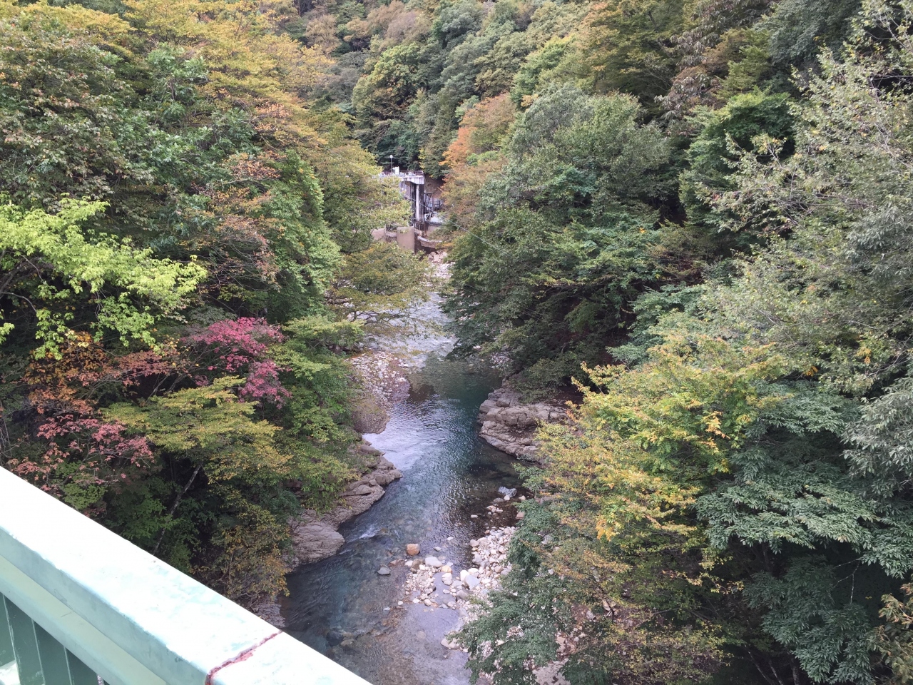 中之条から四万温泉へ。国道と並走する川は四万温泉まで続きます。四万大橋からは絶景の眺めが。そして各旅館からも眺めることが出来ます。山奥の川といったイメージがぴったりですね。川の周りに生い茂る木々はもう少ししたら紅葉になるかもって感じでした。上流に行くとダムがあり、その先の堰き止められた川面は、見事なまでのエメラルドグリーンでした。