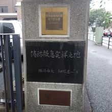 日本大通り沿いに消防救急発祥の記念プレートがありました
