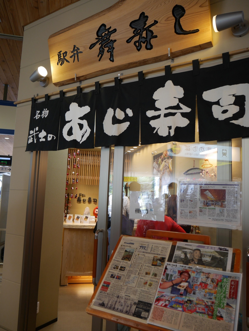 小さな売り場にお弁当が数種類用意されています。今回は大人気の駅弁「武士のあじ寿司」(1,110円)をいただきました。