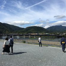 三連休の中日に京都一人旅をした際に立ち寄りました。この橋を渡ると嵐山のメインストリートにつながり、竹林の道、天竜寺などがあります。阪急嵐山駅から行きましたが、意外に人は多くなく、道も非常に広いためゆったりと歩けました。お店も沢山あるので食べ歩きも面白いです。しかし渡月橋を渡った先の交差点は常に大混雑しています。