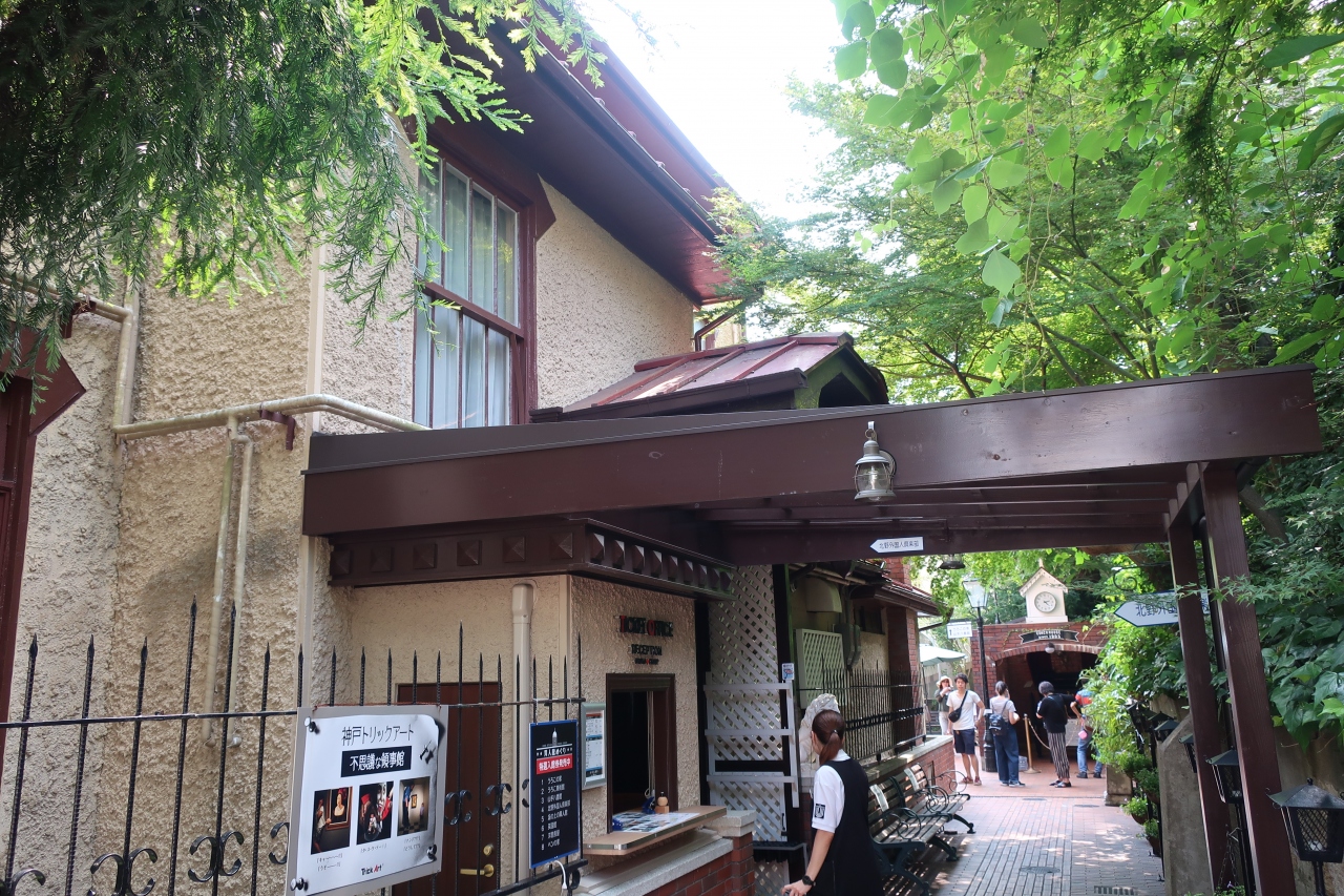 神戸 北野にある山手八番館をさらに東側に行くと北野外国人倶楽部があります。正面に見える入口は礼拝堂の入口で、入場口は路地の横からです。明治後期の建物は木造2階建てですが、正面の礼拝堂は見えるものの建物の全体像は良く見られません。内部やヨーロッパで見たような立派な邸宅で、特に広いリビングには大きなテーブル、暖炉など見ごたえがあります。バーもある邸宅は当時の優雅な生活が窺われる邸宅です。