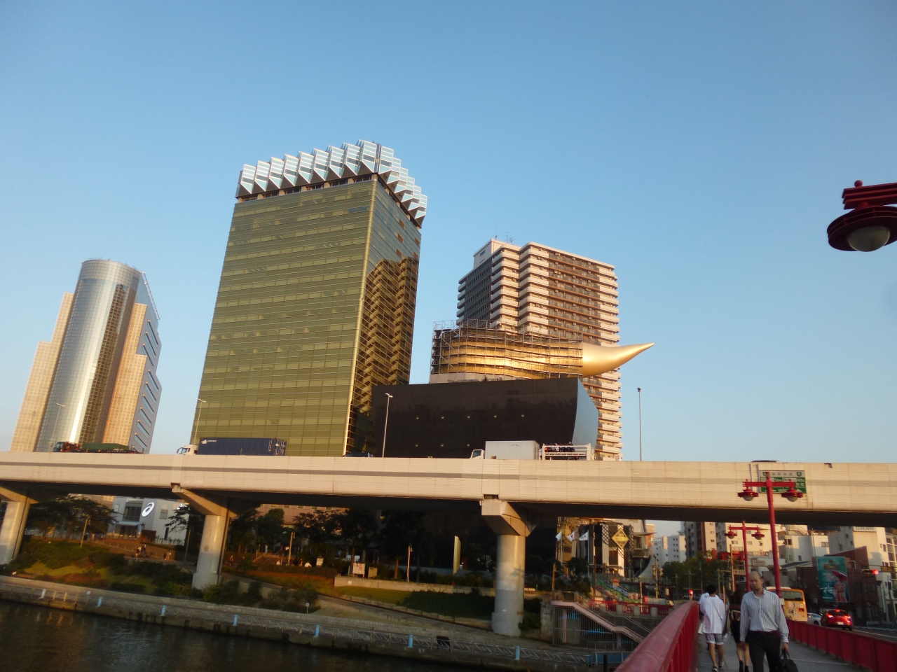 隅田川から見える景色としてもはやおなじみとなった「アサヒビール吾妻橋ビル」ですが、今回訪れたところ、一部工事が行われていました。