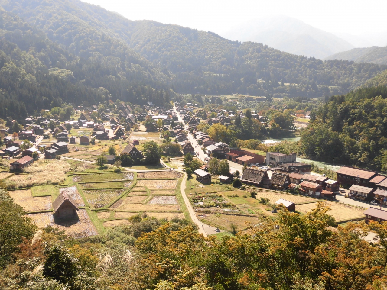 白川郷の全体を見渡せる撮影スポットです。集落からシャトルバスが20分おきに片道200円で出ています。展望台までは歩いても行けますが、けっこうな距離があり、坂道なので、行くときはバスを利用したほうがいいと思います。帰りは散歩がてら徒歩で下っても大丈夫でした。