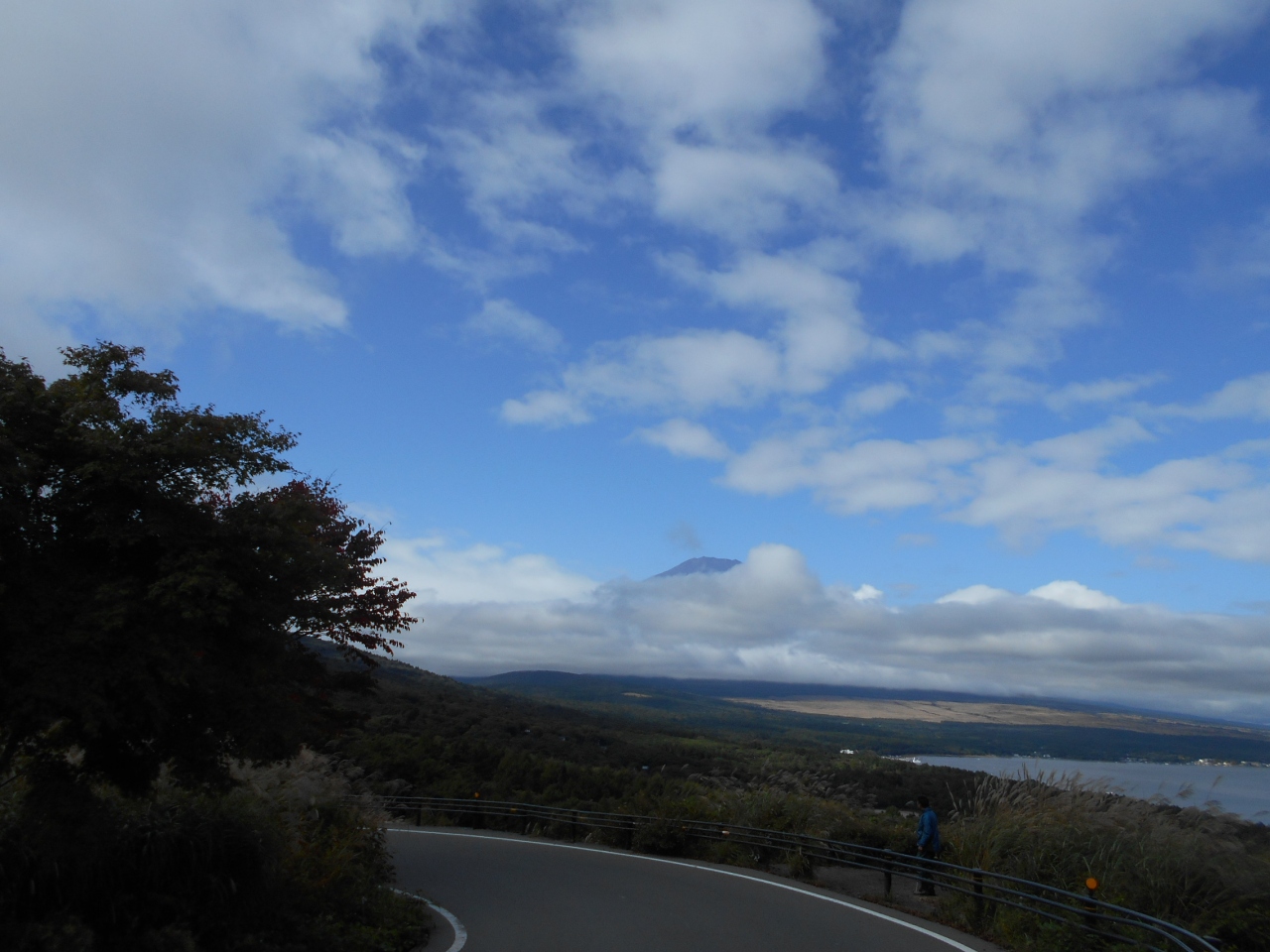 三国峠という峠の途中に無料の駐車スぺースがあり、そこに車を停めて富士山と山中湖を見ることが出来ます。