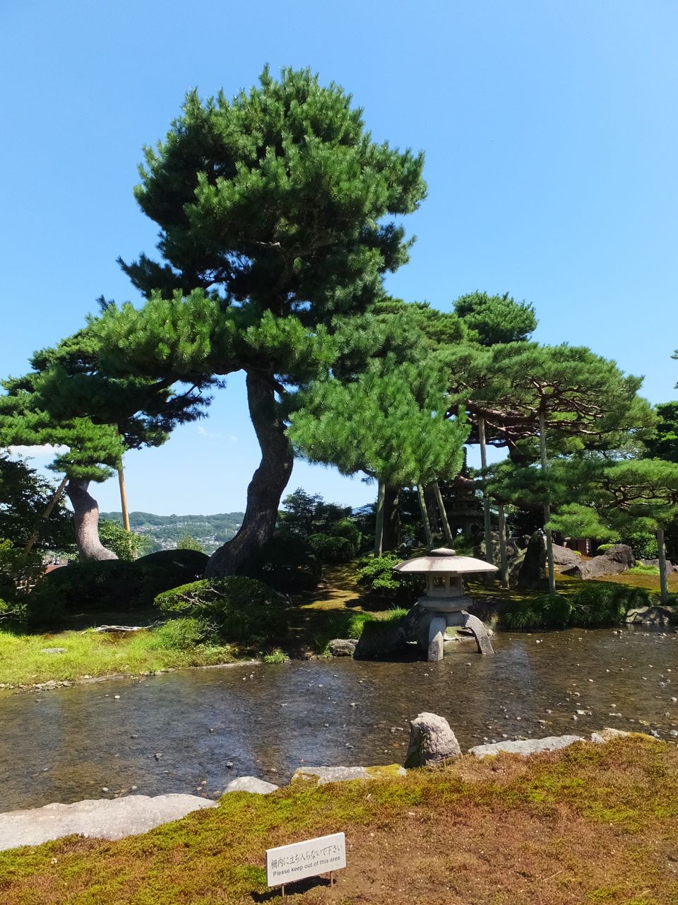 七福神山の中央の赤松が巣ごもりの松、とのことですが、中央をとろうにも左右に巨木、中央に小さな木が2本、なのでどれが巣ごもりの松なのかな、という感じです。ただ、この兼六園ができるころからあるとすると巨木のどちらかだと思います。