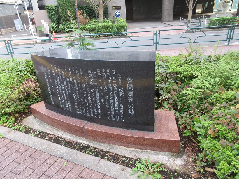 虎の門駅を降りてすぐの交差点近くにある黒い石碑です。読売新聞がここで生まれた場所ということで、尾崎紅葉や幸田露伴が勤務していたこともあるようです。事実を報道するということと、見解を述べること、どちらも近代民主主義にとっては必要なことなのでしょう。昨今はマスコミが視聴率を上げるためにドラマ仕立てのニュース番組を編集したり、ニュースのストーリーを作り、それに合致しない事実は報道しないといった傲慢さも目につくようになりました。「偏向報道」としてそうした姿勢が問題にされるようにもなりました。この石碑は、新聞のみならずマスコミの本来の原点を見つめる場でもあるように思いました。