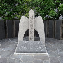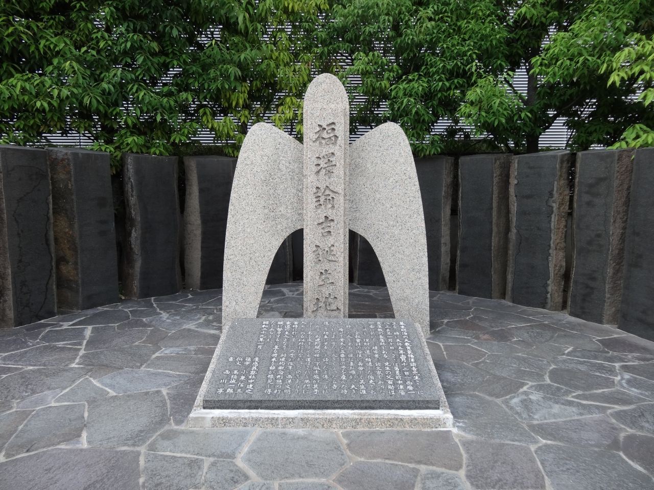 ABC朝日放送本社から見て、堂島川の方にある記念碑です。福澤諭吉は天保5年12月12日(西暦1835年1月10日)に当地で生まれましたが、そのことを記念して作られました。記念碑は中々モダンなデザインで立派なものです。