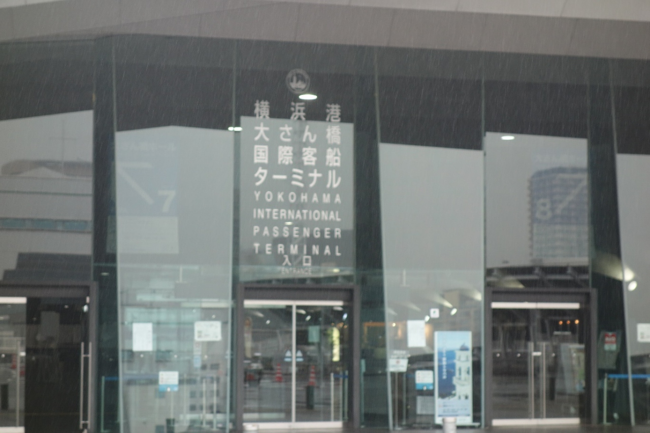 像の鼻パーク横から海岸通りを歩いて行くと大桟橋の方へ向かうことが出来ます。ちょうど船が着いていて外国人の方たちが付近を歩いていました。ボードウォークになった建物の上側をゆるやかな坂に沿って登って行くと屋上の広いデッキから横浜の風景を眺めることも出来ます。