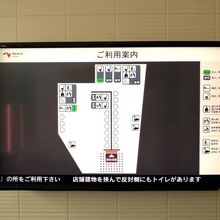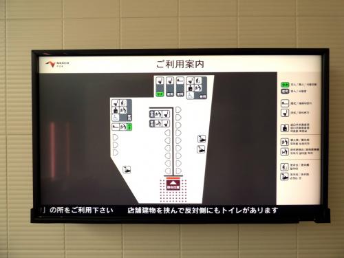 トイレ入口には利用案内の電光掲示があり、便利で、しかもおしゃれな感じです。