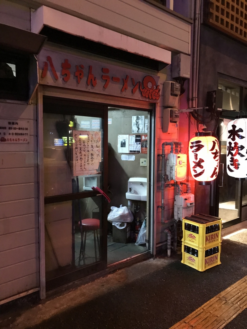 渡辺通りの交差点から、薬院方面に数分の通り沿いにある店。夜は入口が暗くわかりずらいが、中に人が多くいるのでわかる。ラーメンを注文。