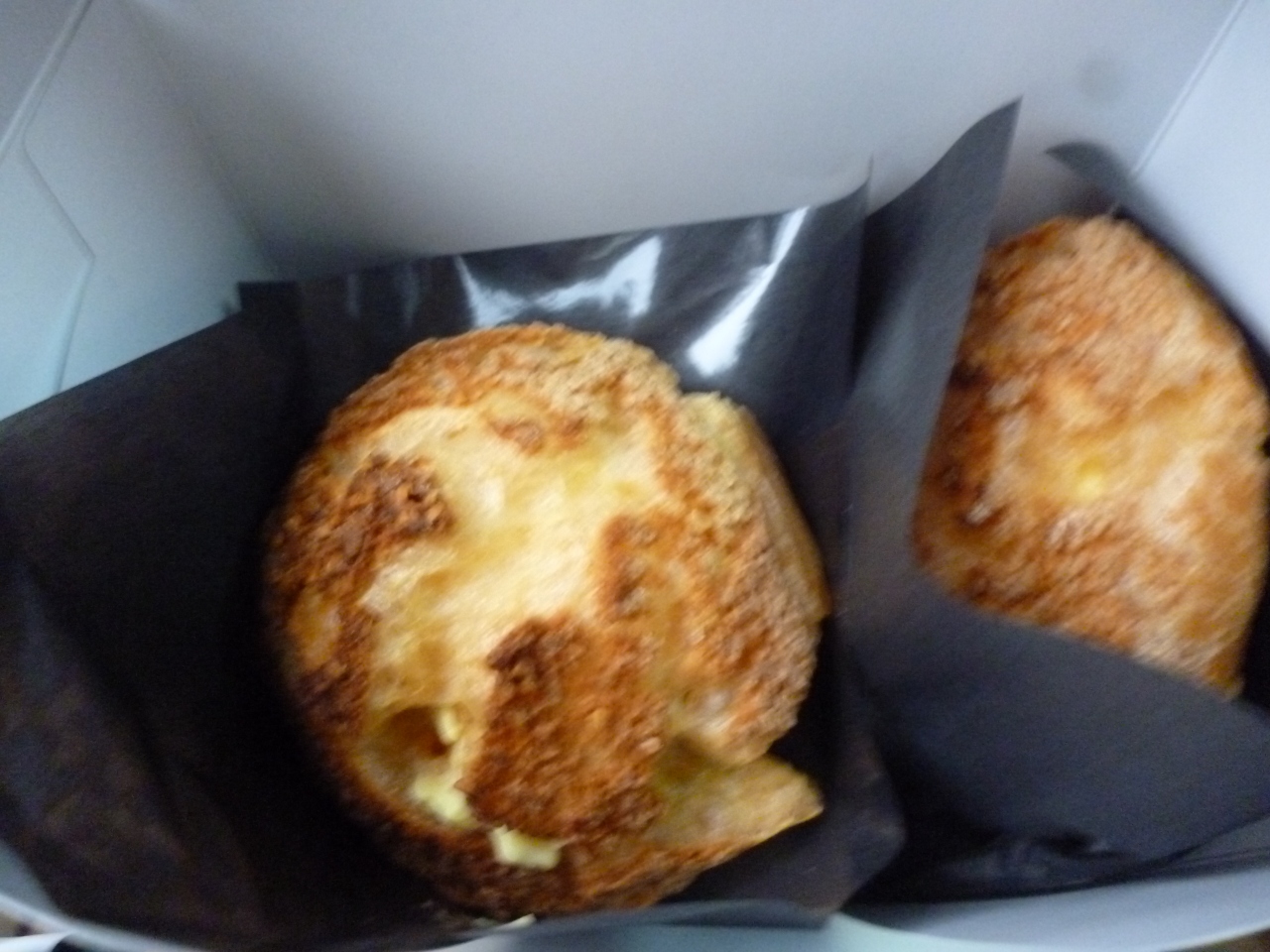 温泉街におシャレな洋菓子店がありました。お店の中では塩麹をのせてシュー皮を焼いていました。焼きたてのシュー皮にその場でカスタードクリームを詰めてくれます。濃厚なクリームと塩麹の皮がよくマッチして美味しいシュークリームでした。