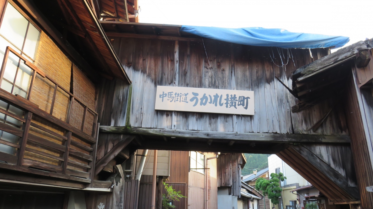 雨漏りをしているのか渡り廊下の上にはブルーシートがかけられていました。