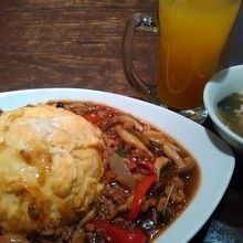 予想以上に辛くて、濃厚で甘いマンゴジュースがすすみました。