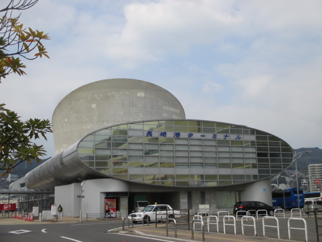 この長崎港ターミナルから、軍艦島へのフェリーが出港します。私はツァーで行ったので、絶対乗れるとわかってたので安心でしたが、軍艦島に行くチケット売り場は長蛇の列でした。この建物は、船をイメージしているような感じでユニークです。