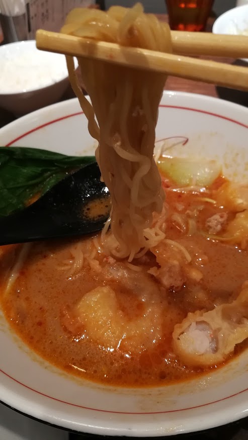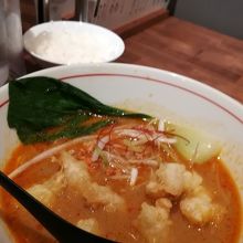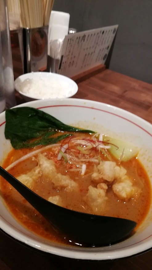 私は小エビの天ぷらの乗ったたんたん麺を頂きました。