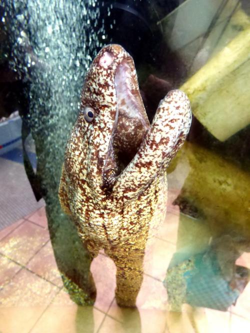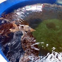 海亀プールの壁面の一部はガラス張りになっていて、泳ぐ様子を横から見える仕掛けのようでしたが、濁っていて見えず残念でした。