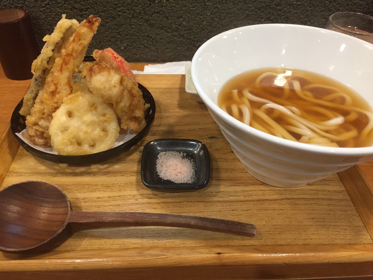 天ぷらとうどんのセットで、1200円くらい。ハイボールを頼んでも、1500円程度で収まる!お塩で食べる天ぷらは美味しい。串カツもやっている。店内はそんなに広くないが、カウンターには、一人のお客さんもいて、一人飲みでも入りやすい。また、行きたい。