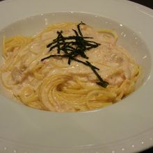 天神に何店かあるカジュアルなイタリアンです。ソラリアステージビル地下2階にあり、テーブル席中心です。手作りパスタで有名で日替わりパスタのランチはかなり安かったです。この日は明太子のクリームソースでした。