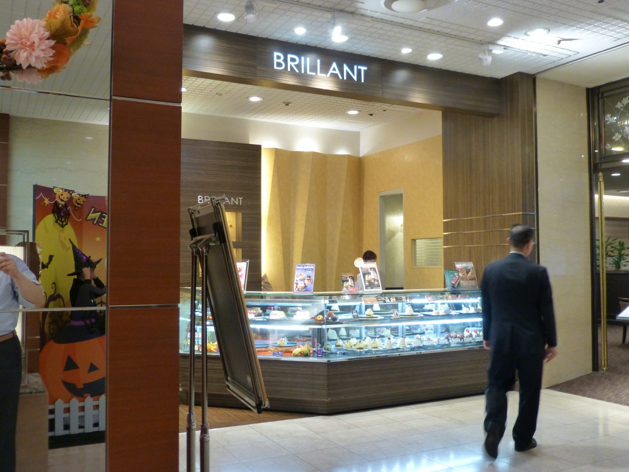 新阪急ホテル1階にあります。空港バスや阪急梅田駅側の入り口から入るとすぐ右手です。喫茶・軽食のスペースです。大きな茶色のガラスで通路と仕切られているので、とても落ち着きます。向かいにはオープンの喫茶コーナーもありますが、こちらはクローズのスペースなので良いと思います。今回はケーキを買って持ち帰り、部屋で食べました。この季節の新作ということで、チョコレートのスポンジをベースに栗を使った「佩び」というケーキでした。美味しかったです。