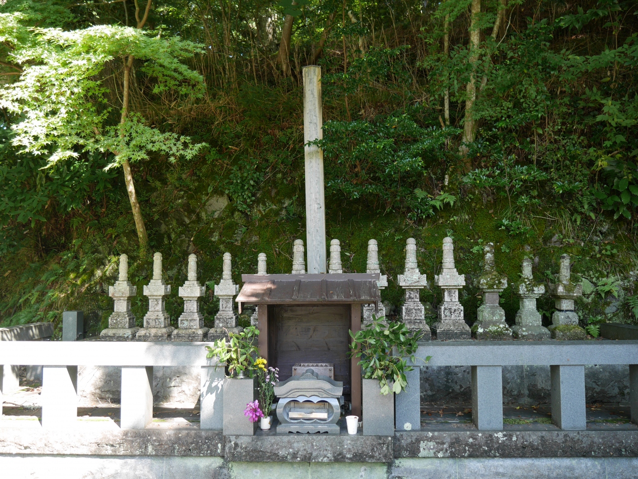 頼家のお墓のすぐ近くにあります。死後もこうして主君のそばで…、と思ったら、2004年の台風で被害に遭い、この場所に移設されたそうです。もともとはもっと山の奥にあったそうですが、現在の場所の方がしっくりきます。
