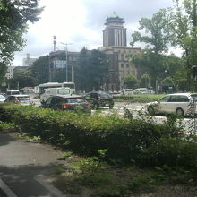 名古屋城からすぐの官庁街にあり 大きな並木が両側にあって 木陰の多い大通りに面して立っています。屋上にある小さな緑の屋根のついた塔が ちょっとしたアクセントになっていて とてもかわいらしく、なんとなく親しみを感じる建物です。
