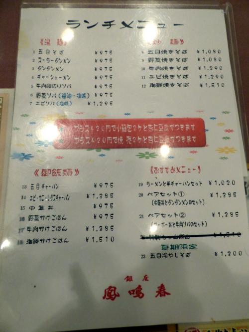 銀座 鳳鳴春(ほうめいしゅん) 八重洲中央口店の昼食