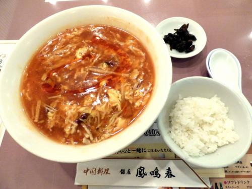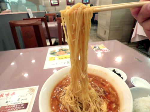 この日私が食べたスーラータンメン ランチ(¥975-)は、硬めの細麺に辛いスープが絡んで美味しかったです。