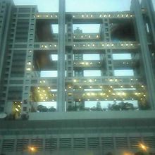 このフジテレビ本社ビル、球形の展望台がユニークなデザインで、