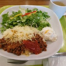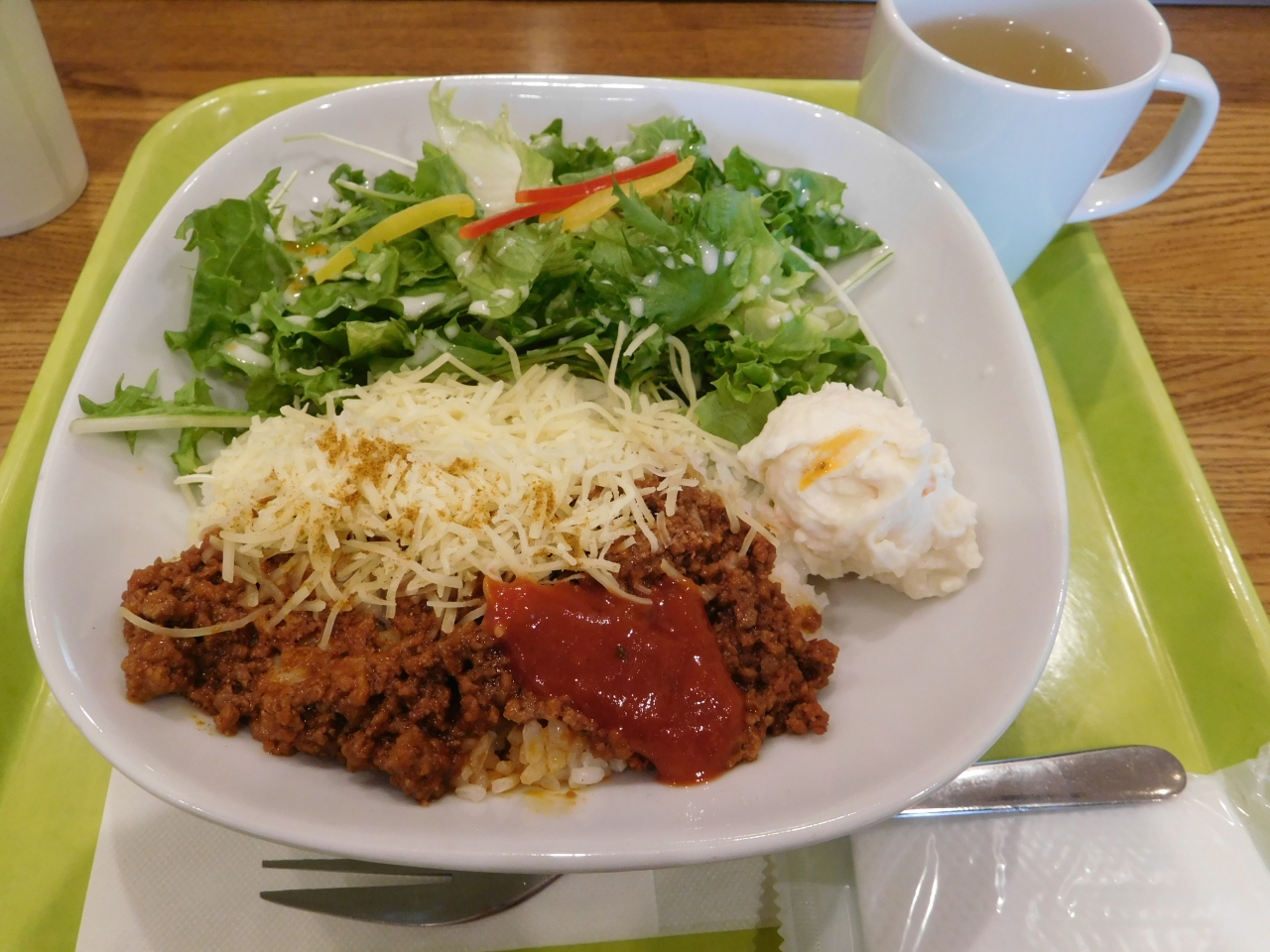 日比谷シティ(富国生命ビルB1階)のフットサルコート側にあります。とろけるクレープで有名なお店ですが、ランチタイムは、野菜たっぷりのヘルシーな丼があり、近くの会社員でほぼ満席になっていました。カウンターで注文・会計をするセルフサービススタイルでしたが、気軽に利用しやすい雰囲気で、なかなか良かったと思いました。