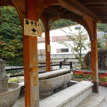 ここは駐車場を上がった道端にあるが、通常に足湯に加えて、少し高い位置に手がつけられる手湯があるので、足と手を同時に湯につけられるという珍しい施設。ちょっと体験するにはよい。