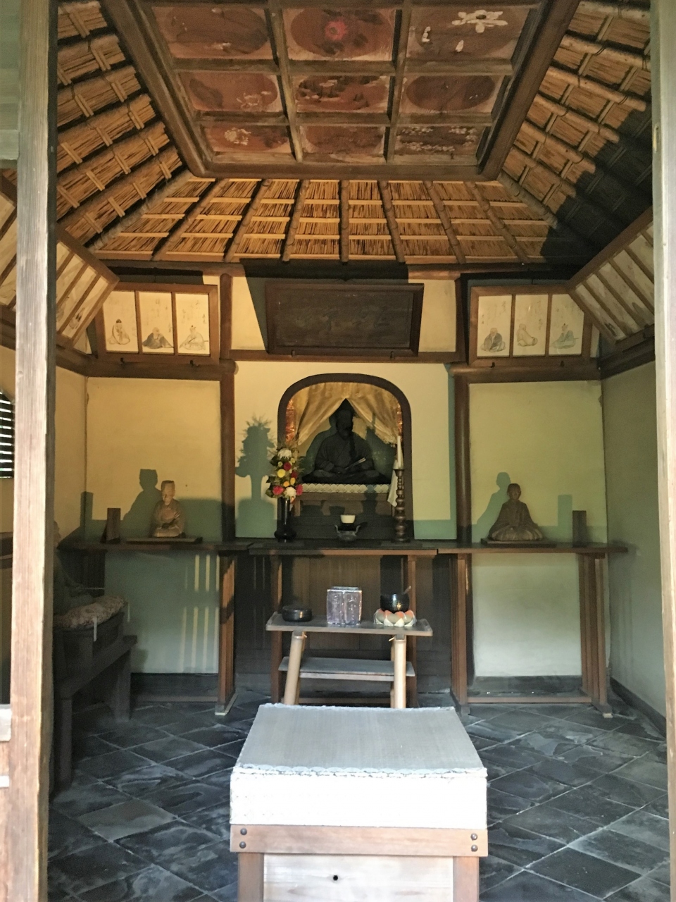 また境内奥の翁堂の天井画には伊が最晩年に手掛けたとされる『四季花卉(かき)図』(全15面)が復元されて公開されています。翁堂が再建された安政6(1859)年には既にはめ込まれていたものとされ、それをデジタル技術によって復元されたものが現在の翁堂で見ることができます。若冲が芭蕉とどんな繋がりがあったのかは定かではありませんが、全国に『ふたつ』しかない天井画がこの義仲寺に納められているのは単なる偶然ではないでしょう。