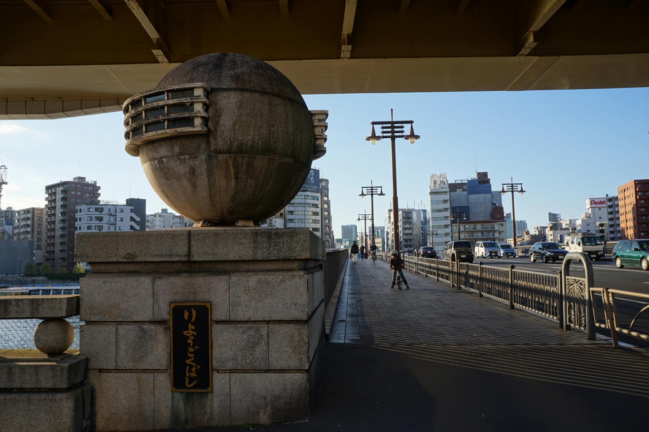 両国橋は、武蔵国と下総国の2つの国を結ぶので両国橋。江戸時代の明暦の大火後に幕府が架けたのが始まりです。現在の橋は、そこから何代も経ったものですが、国道14号(靖国通り)を通してその重要性は健在です。