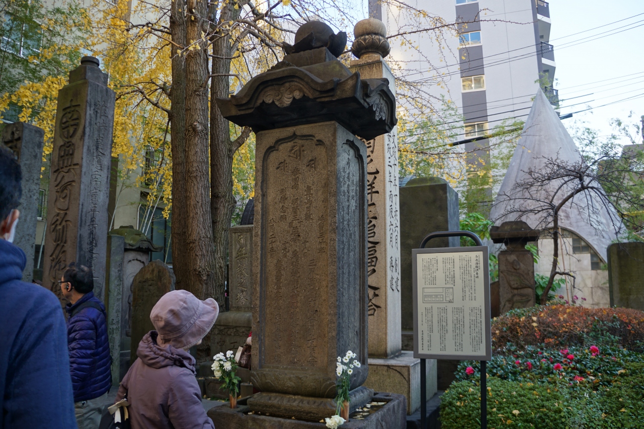 石造明暦大火横死者等供養塔の説明板は力塚の隣りにあるのですが、実際どれがその供養塔なのかよく分からない。もう少し進んだ先のこの唐破風の屋根の付いた石塔なのですが、お寺の人に聞いてやっと分かった次第。もう少し何とかしてもらいたいです。