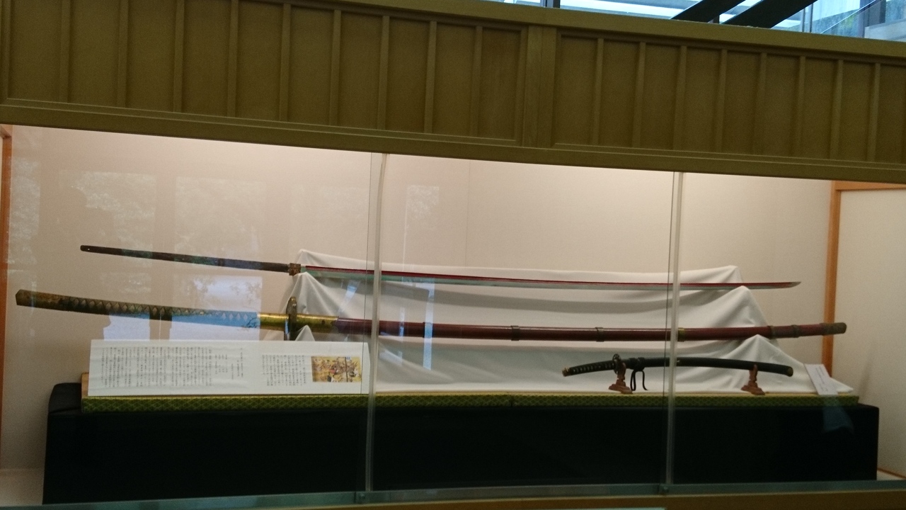 宝物館の入り口には見たことない長い刀が展示され圧巻です。