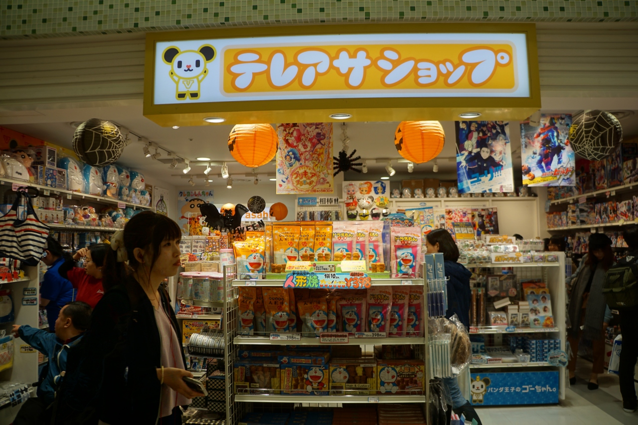 テレアサショップのメインを張るのは、ドラえもん。これもキャラクターとしてはかなりの老舗と言えるでしょう。ただ、正面に置いているのは、人形焼きの袋。キャラクターの夢を感じるという視点だとごちゃごちゃ感しかなくて、ちょっと物足りないような気はします。