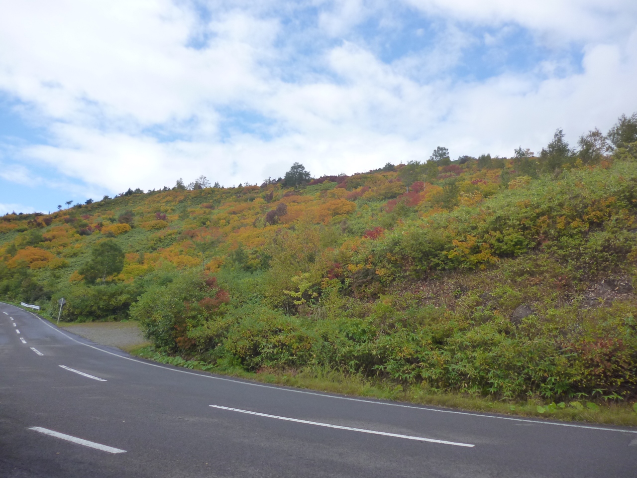 八幡平高原の温泉に宿泊して翌日、アスピーテラインをドライブしました。紅葉には少し早かったですが、高原の山の木々の緑がきれいでした。高い場所を通っている道路なので展望所からの景色が抜群でした。岩手山もよく見えました。