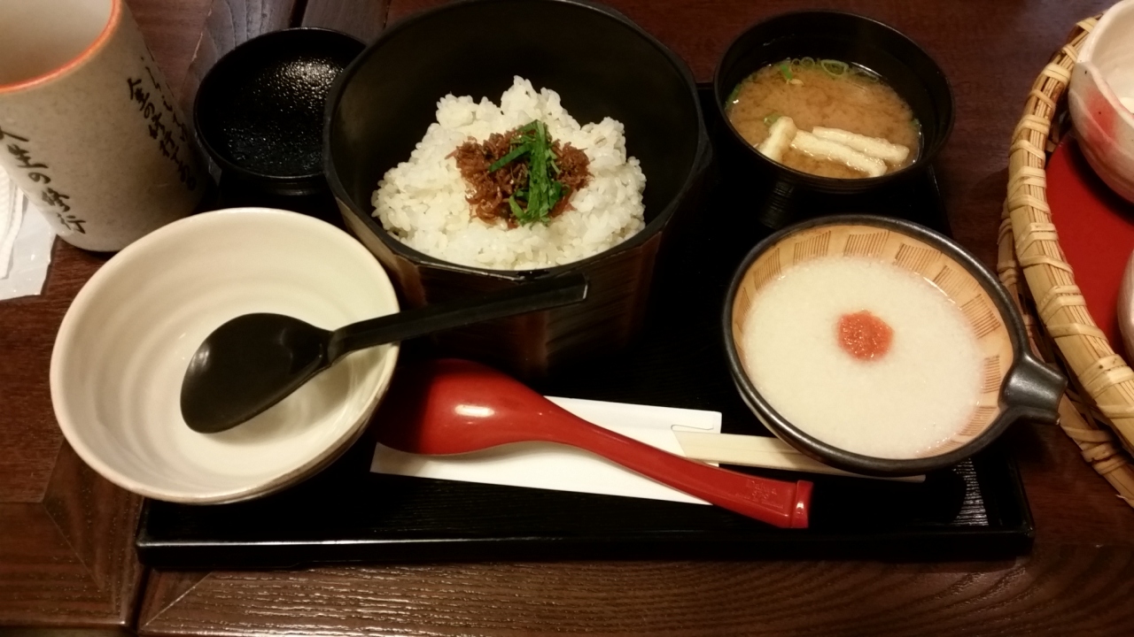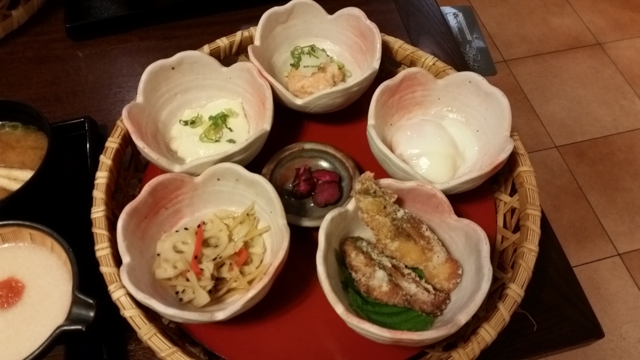 西小倉駅から徒歩5分のリバーウォークで、友達と原安二郎コレクションの「広重ビビッド」を見た帰りに、ランチに寄りました。私は花籠御膳、友達は揚げ出し豆腐セットをオーダー。私のにはしそごはん、明太とろろ、マグロ天ぷら、豆腐、レンコンの小鉢などが付いていて1300円ほど。友達のは、1000円ほどでした。味は普通。