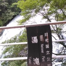 湯滝の目の前に、下から上を見上げる感じで展望所があります。