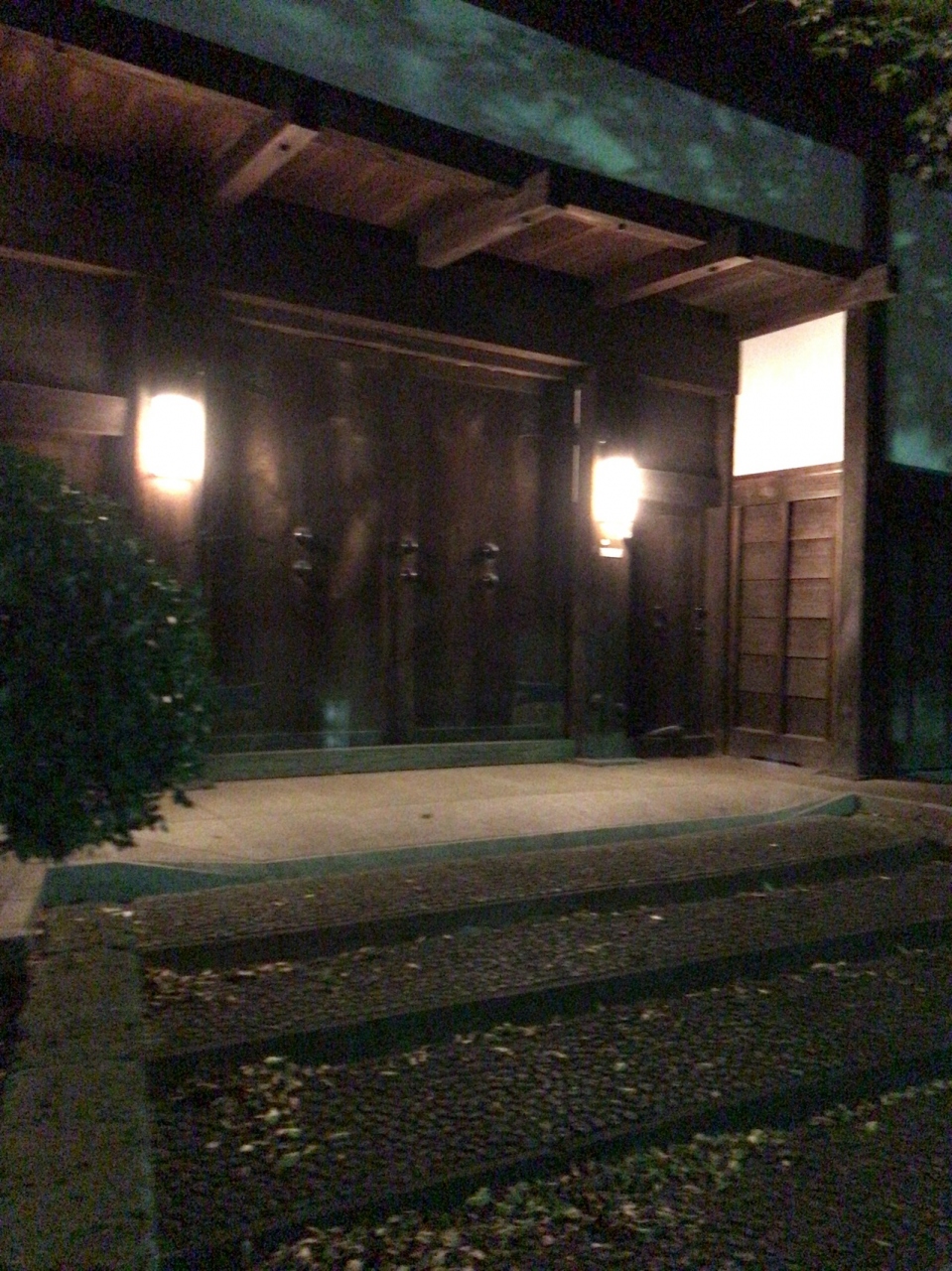 都立大学駅から徒歩10分ほど。中根公園に隣接した岡田家の門。とても普通の家には思えません。すごく立派な門で、迫力があります。中はどうなっているのか気になってしまいます。門もすごいですが、周りの木もすごいです。