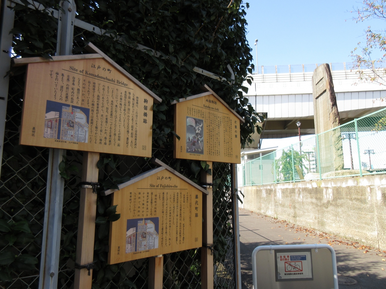 両国橋のたもとに立つ表忠碑の裏に説明板のみが立っています。説明板が立っている付近の旧名です。開墾し支配していた藤左衛門の土地を幕府が召し上げ、代わりにこの周辺の土地を賜ったことから名付けられたとのことです。かなり賑やかな場所だったようですが、その面影はありません。なぜこの説明板が立っているのかよくわかりませんでした。