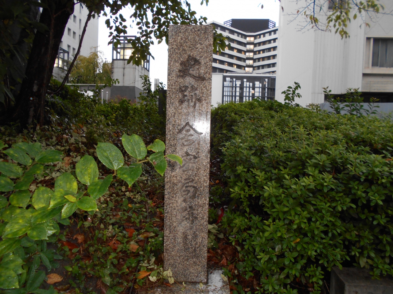 谷町4丁目の駅の近くにハラタマの胸像などとともに石碑が建てられています。
