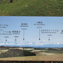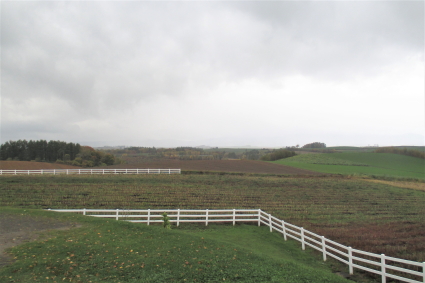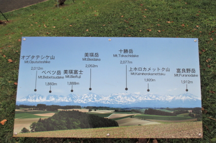 新栄の丘展望公園は他の観光ポイントに比べるとちょっとマイナーの様で、訪れた時が10月のオフシーズンだったことやお天気が悪かったこともあってか、人影がありませんでした。お天気が良ければ十勝岳連峰の眺望が良いようですが、設置されている案内写真から想像するばかりでした。