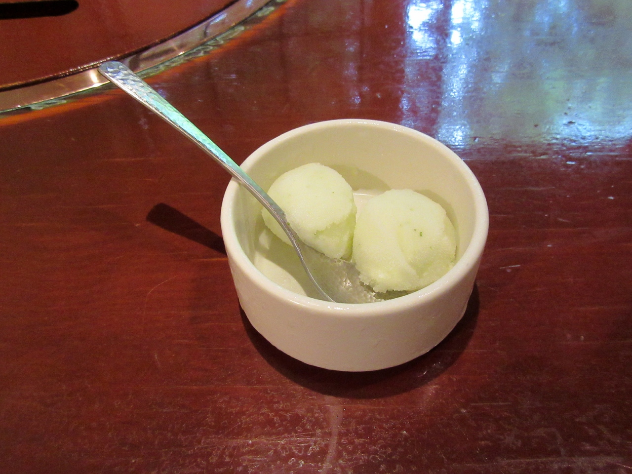 永田町にある黒澤監督のお店です。昭和の日本住宅然とした建物は、まさしく打つ水が似合う雰囲気です。今回、初めてランチにとんかつを食べるために向かいました。とんかつは2階の座敷席になるのですが、ちょうど昼時で満席。レセプションのスタッフが「ご合席でもよろしいですか?」とのことでしたので待っていたのですが、しばらくすると「1名様がそろそろお帰りになりそうですので、もう少しお待ちください」とのことで、テーブルに案内されました。1階と2階のスタッフ間では常にマイクとイヤホンで連絡を取っているようですとり合っているようです。2階は座敷にテーブルが並べられ、壁は昔懐かしい土壁、窓の外は川床のような縁側が設えられており、その向こうには緑が眩しいです。まずソース・薬味が運ばれて来ましたが、こちらのソースは味噌ベースという説明がありました。渋い男に似合いそうな取り合わせです。また辛子類は真っ新の器の中央に使いそうな分が入れられていました。どうやら一人ひとり入れ替えがなされているようで清潔感抜群、これも凄いサービスですね。さて注文した鹿児島黒豚御奉仕ヒレ到着。感想は、とても美味しい、その一言です。味噌ベースのソースも素晴らしいもので、今まで食べたとんかつの中で最高だたと思います。これにデザートのシャーベットまでついて1400円。文句なし!また行きたい!