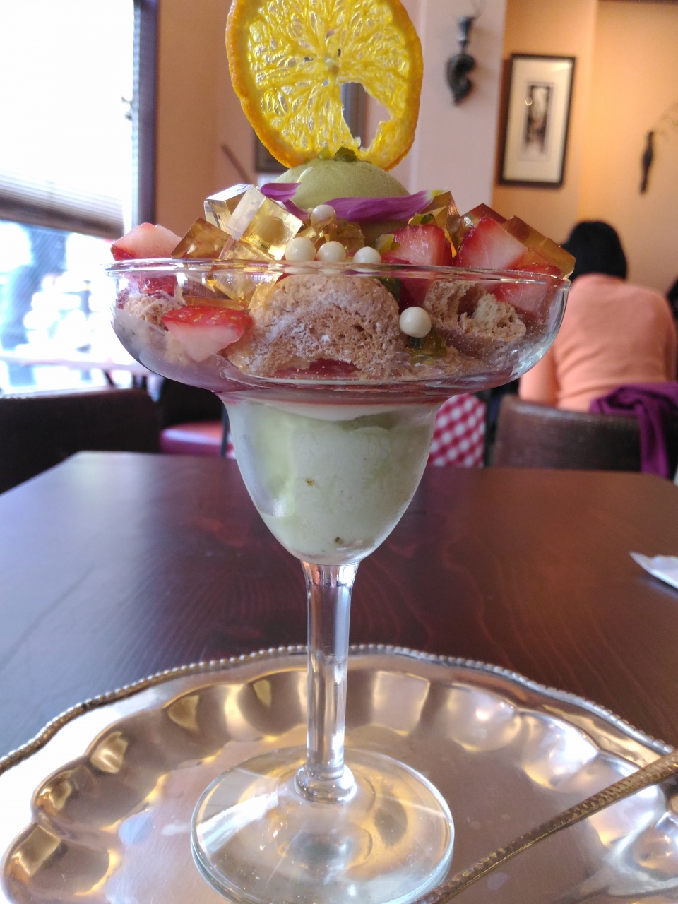 パフェ特集で必ず掲載されていて、目を見張る素敵なデザイン性のあるパフェ!噂通り、数時間待ちましたが、席を外せるので、ウロウロして戻ってきました。パフェの追加は出来ないという事で、2個注文したら、同時に出てきて、溶けるのと競争であわてて頂きました。