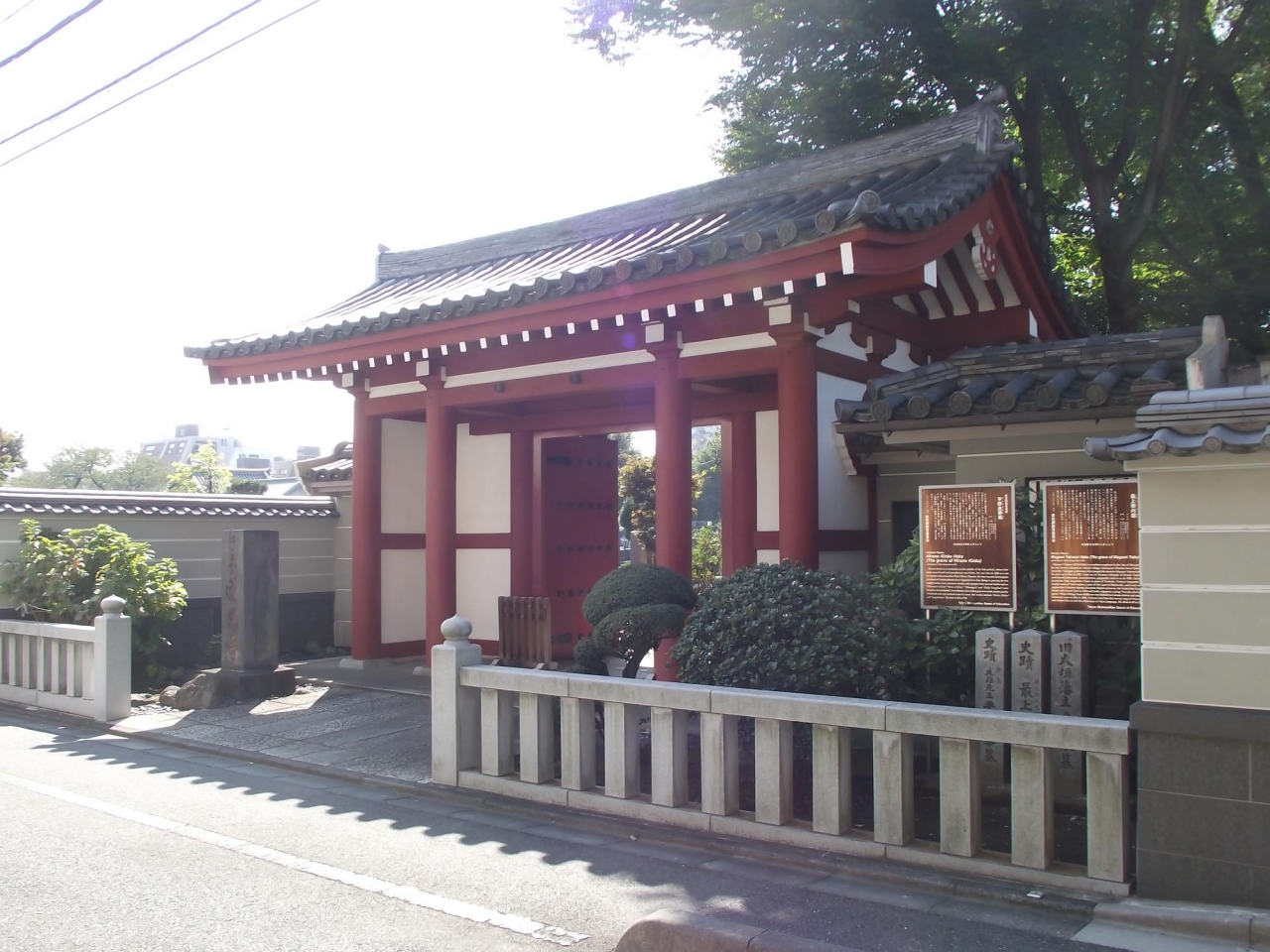 近くを通り掛かった折などに、朱塗りの柱と白壁の綺麗な山門や本堂、東京都指定旧跡の2人の墓などをご覧になっては如何でしょう。
