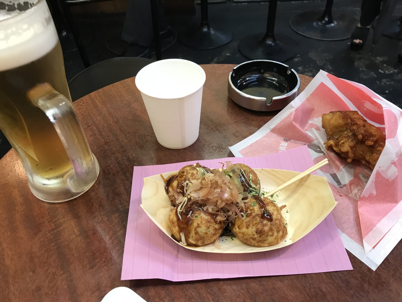 たこ焼きは出汁が出ていて美味しいが、チキンは最悪なので、普通のビールセットがいいと思う。