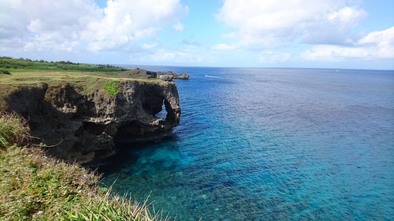 沖縄旅行で万座毛に行きました。行った日が祝日だったので駐車場もほぼ満車でした。遊歩道をしばらく歩いて、絶景スポットからはゾウの鼻の形をした隆起サンゴ礁の断崖を見ることができました。また、その周りにある青い海も印象に残りました。とても魅了しましたが、ただこのときは中国人観光客が大勢いたため、あまりゆっくりと眺めることができませんでした。
